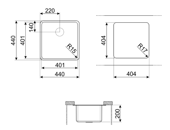 i Расстояние от дна до верхней кромки чаши мойки. Оптимальная глубина — 15-18 см. Чем глубже мойка, тем меньше брызг попадет наружу.