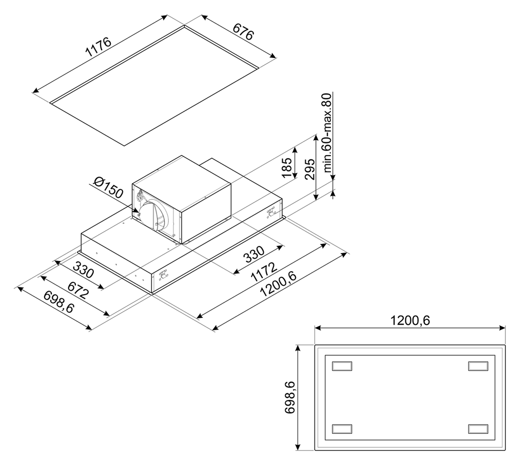 Smeg KSCB124X встраиваемая вытяжка для потолка