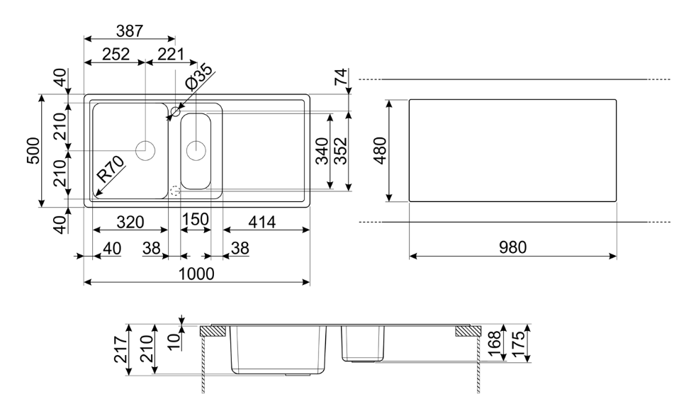 i Наличие и расположение крыла кухонной мойки — слева, справа или с обеих сторон. Крыло оборачиваемой мойки можно расположить с любой стороны.