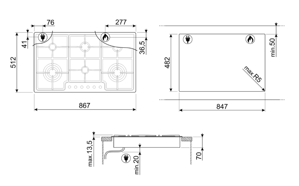 i Приборы могут имеют разное количество газовых, электрических и индукционных конфорок. Выбирайте оптимальный вариант для комфортной готовки.