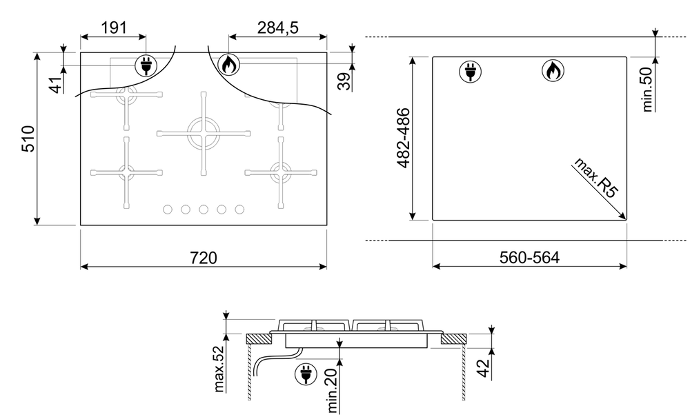 i Приборы могут имеют разное количество газовых, электрических и индукционных конфорок. Выбирайте оптимальный вариант для комфортной готовки.