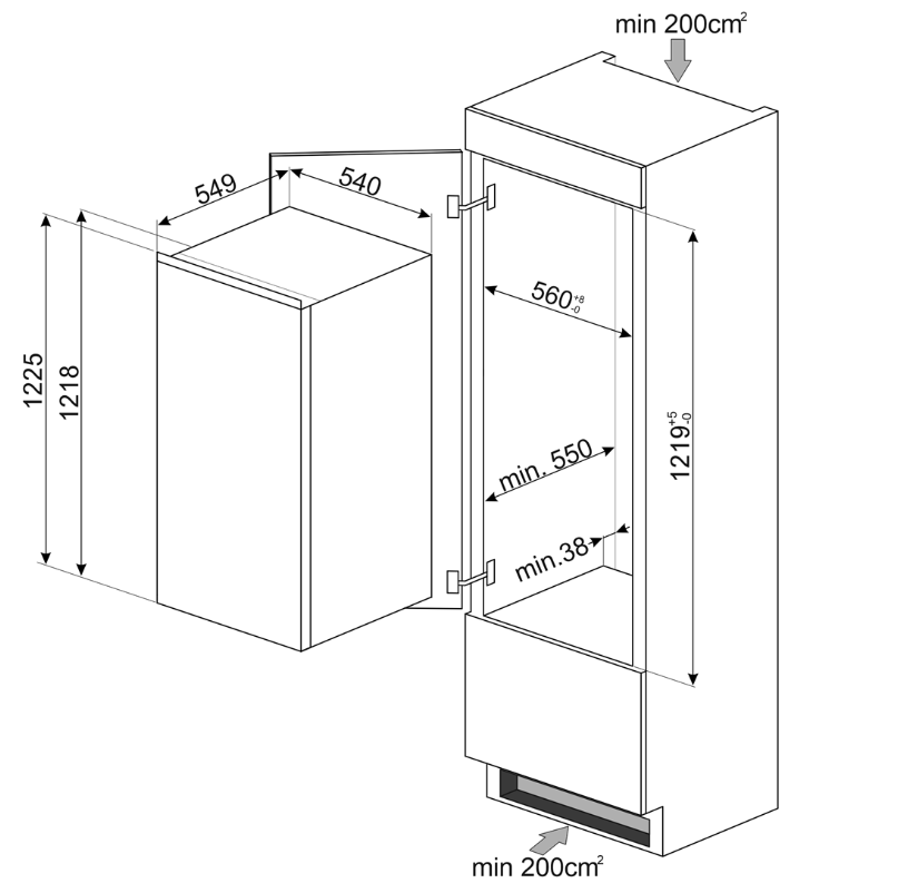Smeg S4C122E однокамерный холодильник встраиваемый