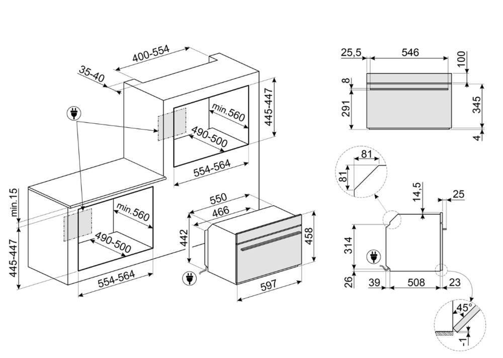 i Ширина корпуса электроприбора. Особенно важно точно знать точную допустимую ширину для встраиваемой техники.