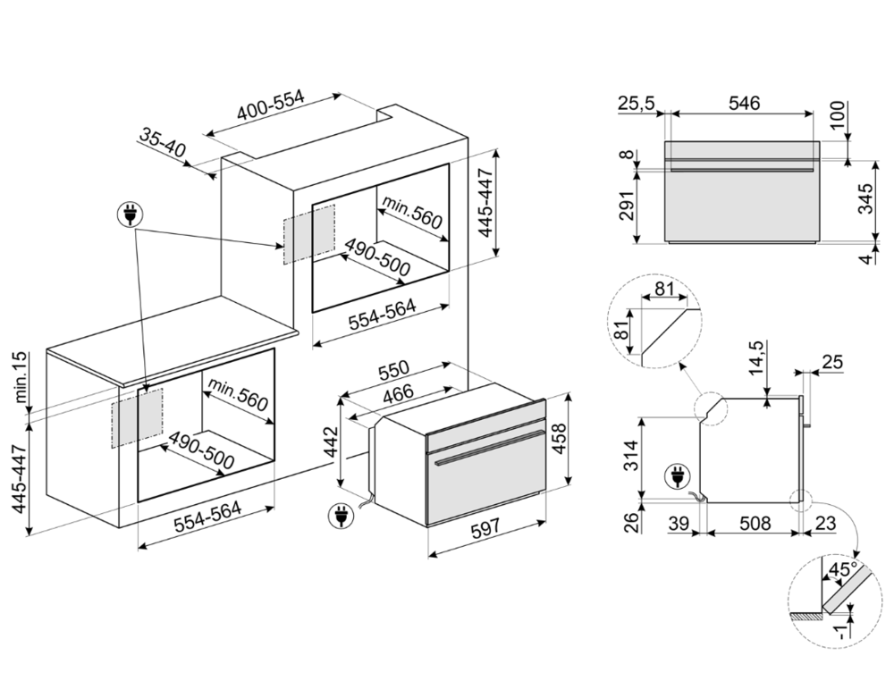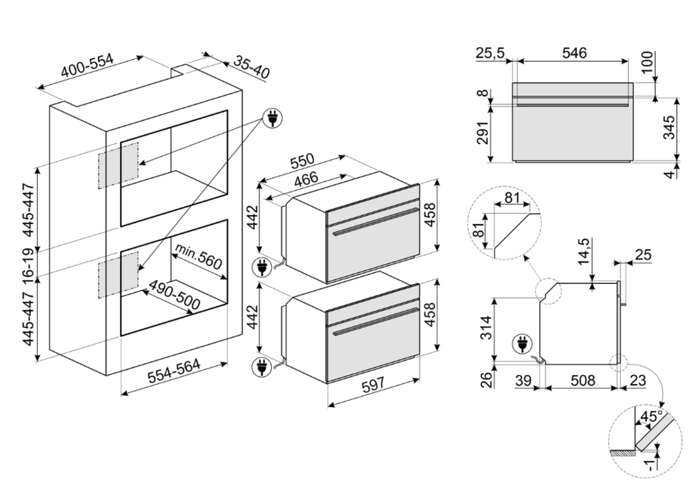 i Ширина корпуса электроприбора. Особенно важно точно знать точную допустимую ширину для встраиваемой техники.