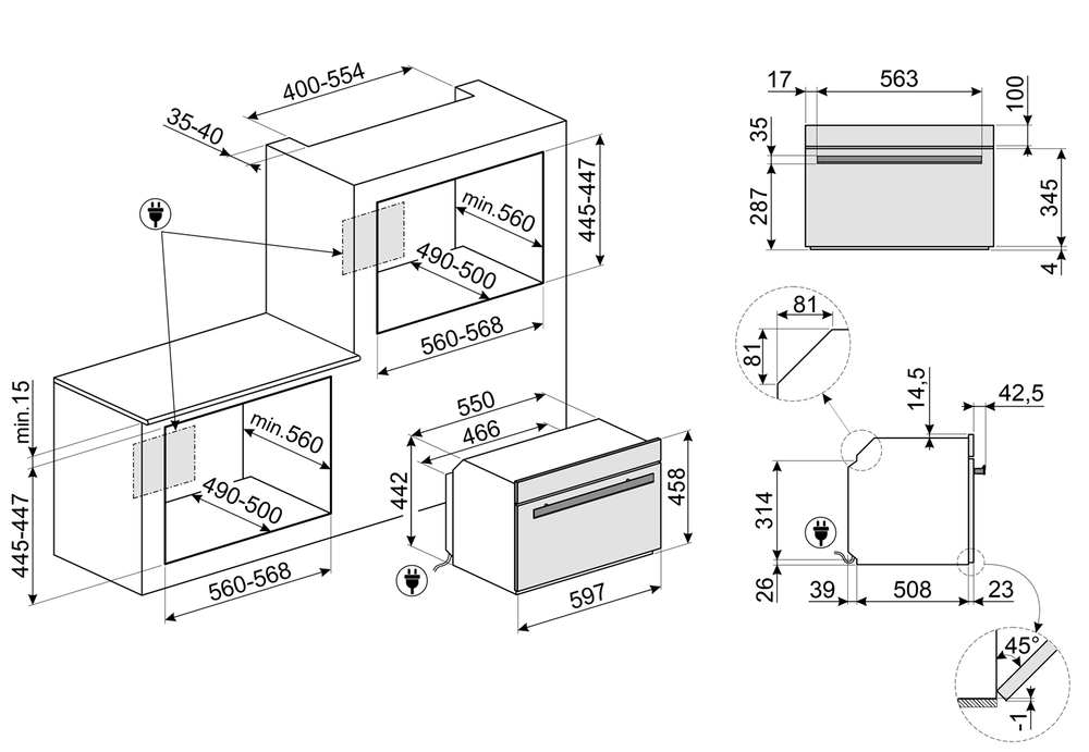 i Ширина корпуса электроприбора. Особенно важно точно знать точную допустимую ширину для встраиваемой техники.
