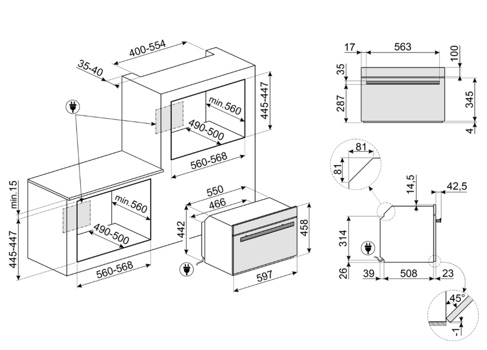 i Ширина корпуса электроприбора. Особенно важно точно знать точную допустимую ширину для встраиваемой техники.