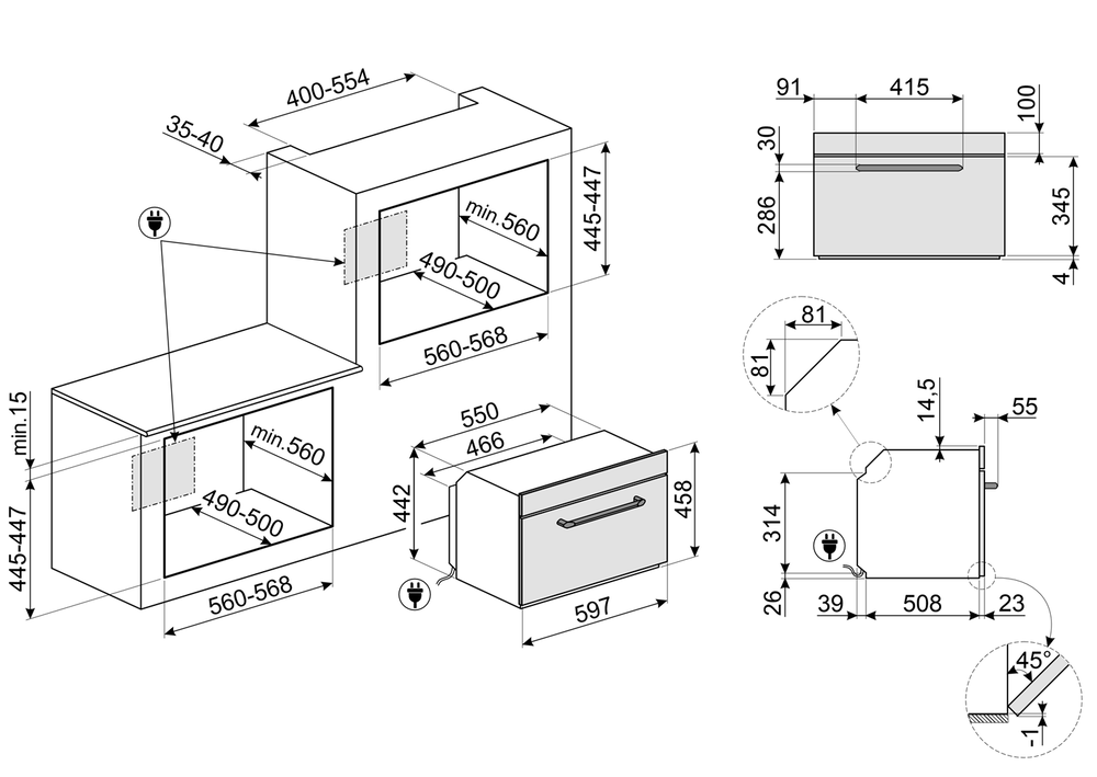i Ширина корпуса электроприбора. Особенно важно точно знать точную допустимую ширину для встраиваемой техники.