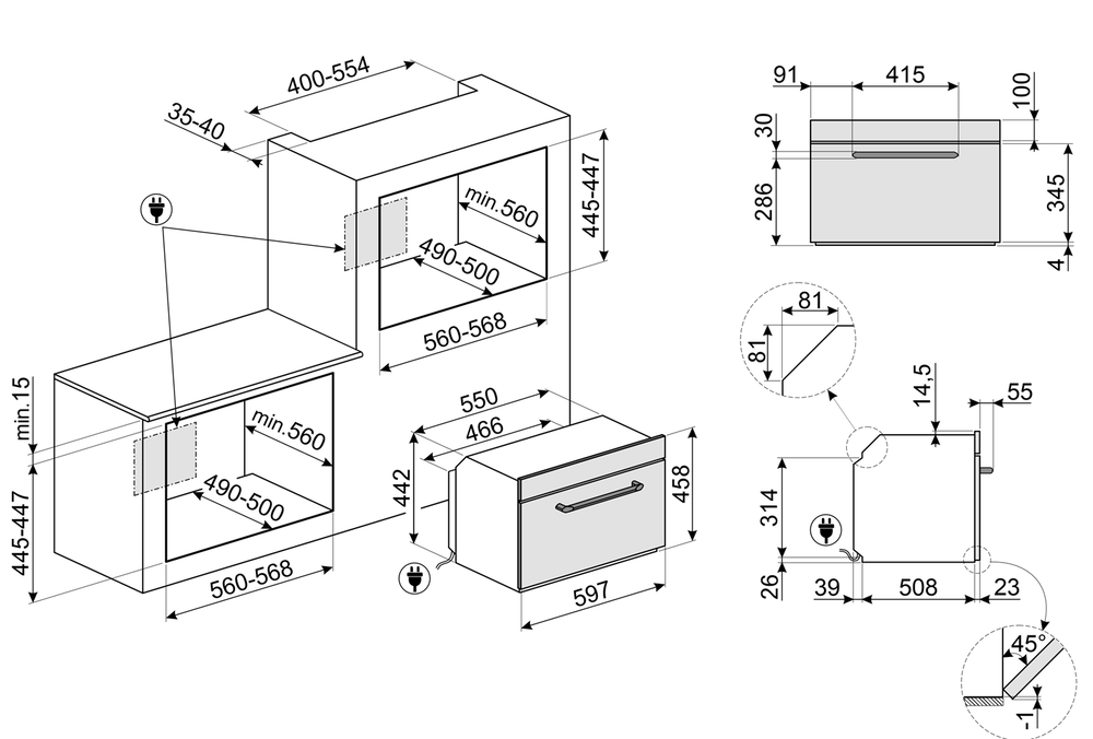 i Ширина корпуса электроприбора. Особенно важно точно знать точную допустимую ширину для встраиваемой техники.