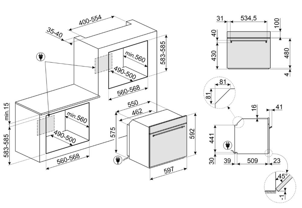 i Ширина корпуса электроприбора. Особенно важно точно знать точную допустимую ширину для встраиваемой техники.
