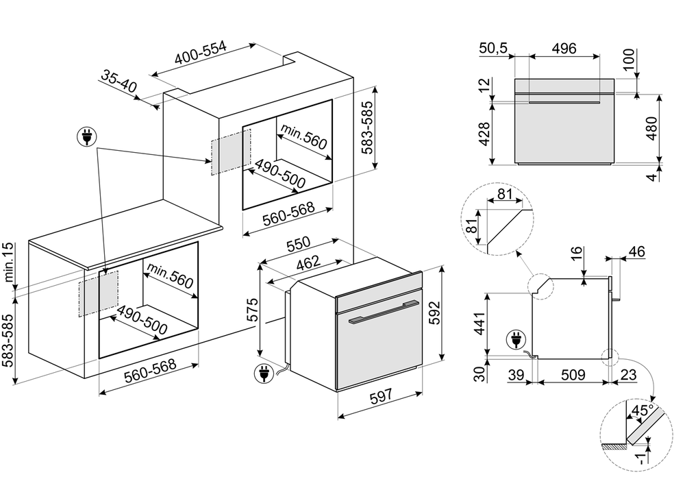 i Ширина корпуса электроприбора. Особенно важно точно знать точную допустимую ширину для встраиваемой техники.