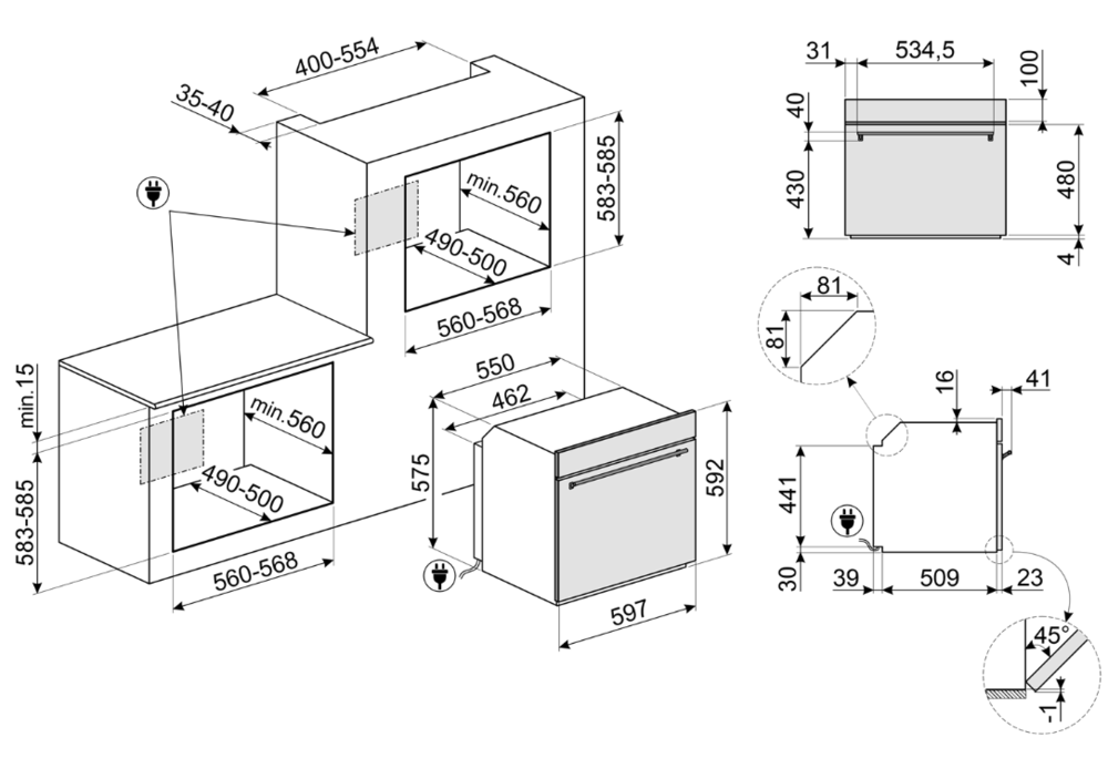 i Ширина корпуса электроприбора. Особенно важно точно знать точную допустимую ширину для встраиваемой техники.