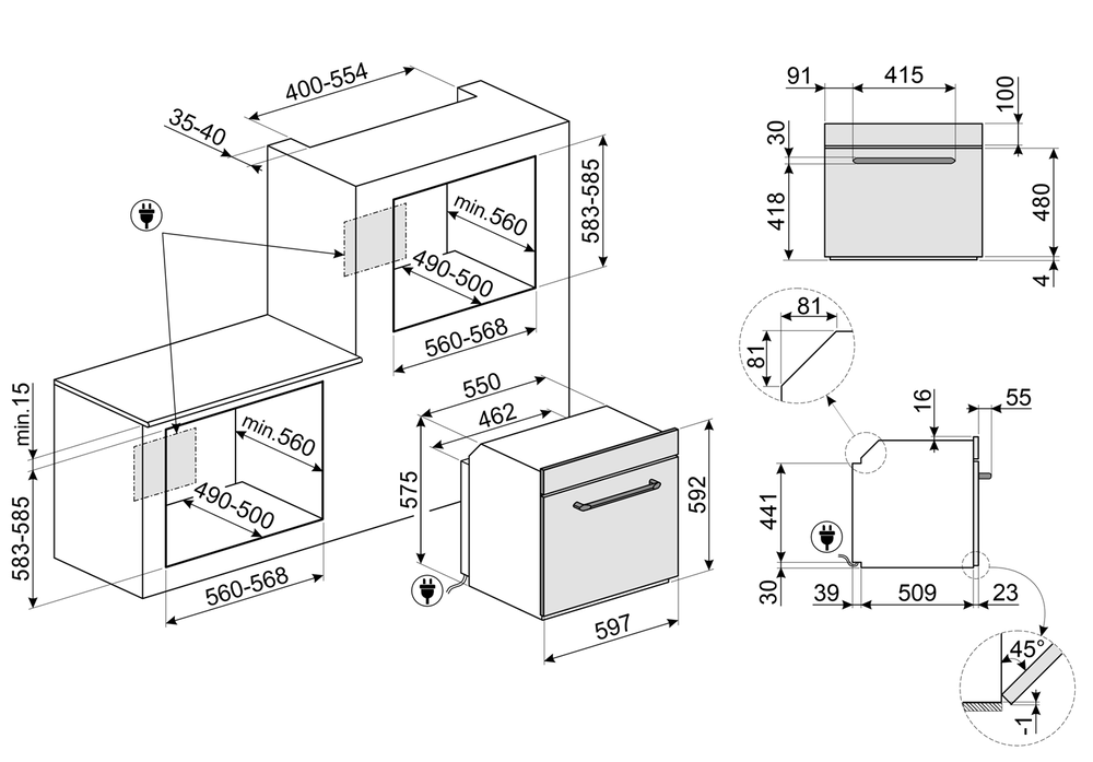 i Ширина корпуса электроприбора. Особенно важно точно знать точную допустимую ширину для встраиваемой техники.