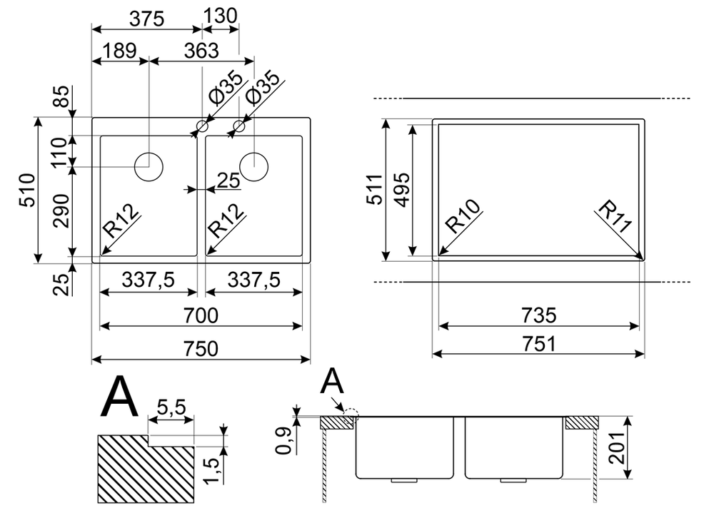 201x750x510 мм |