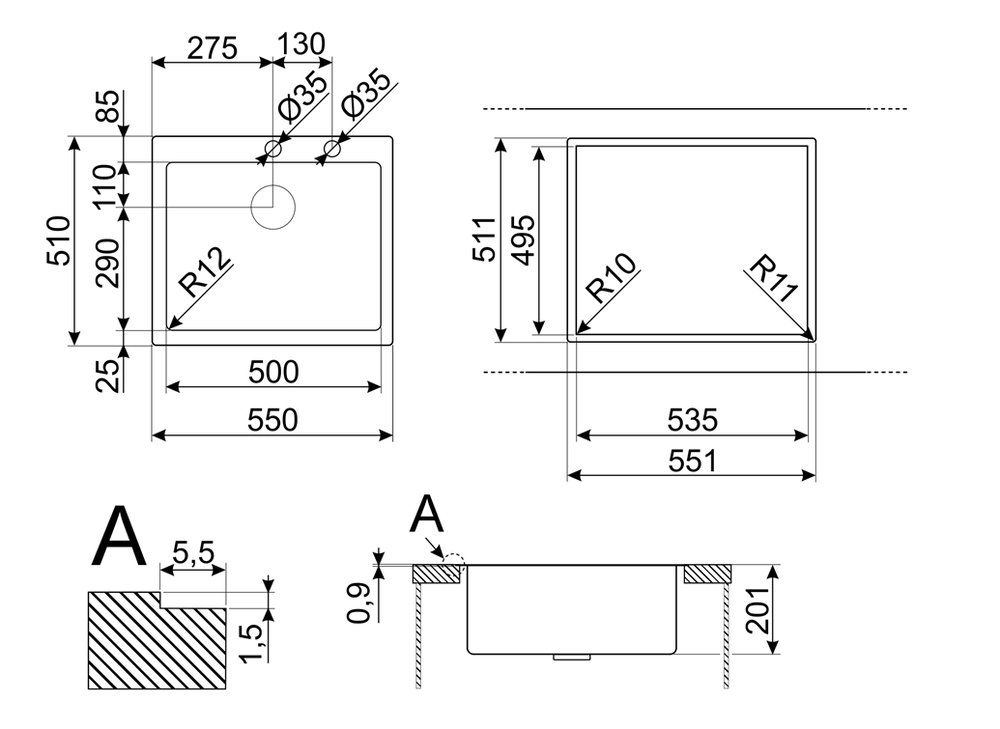 i Наличие и расположение крыла кухонной мойки — слева, справа или с обеих сторон. Крыло оборачиваемой мойки можно расположить с любой стороны.