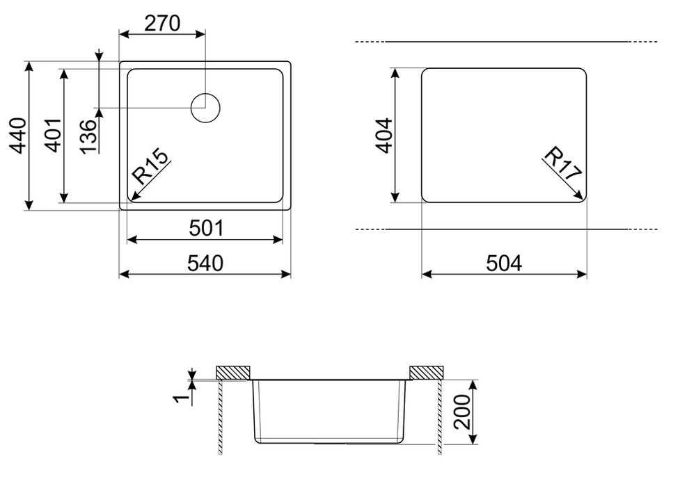 i Расстояние от дна до верхней кромки чаши мойки. Оптимальная глубина — 15-18 см. Чем глубже мойка, тем меньше брызг попадет наружу.