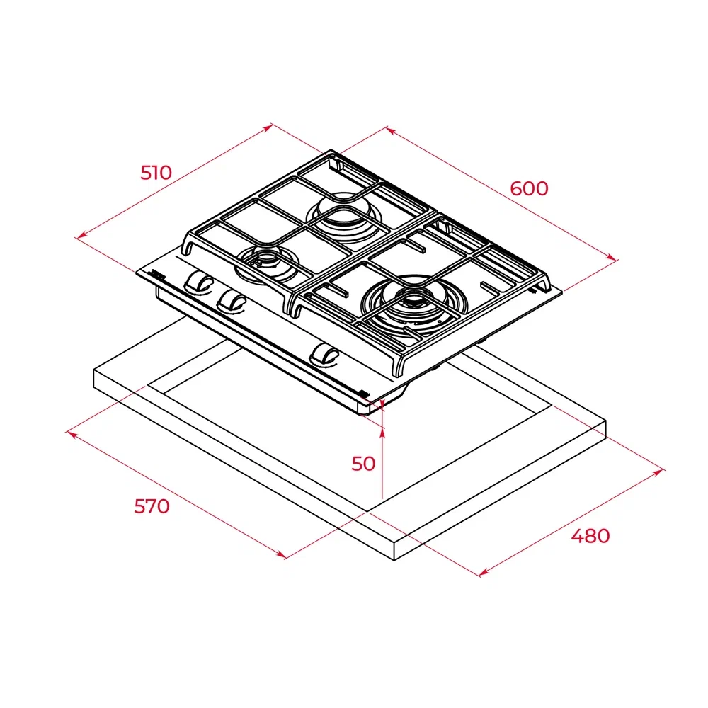 i Приборы могут имеют разное количество газовых, электрических и индукционных конфорок. Выбирайте оптимальный вариант для комфортной готовки.