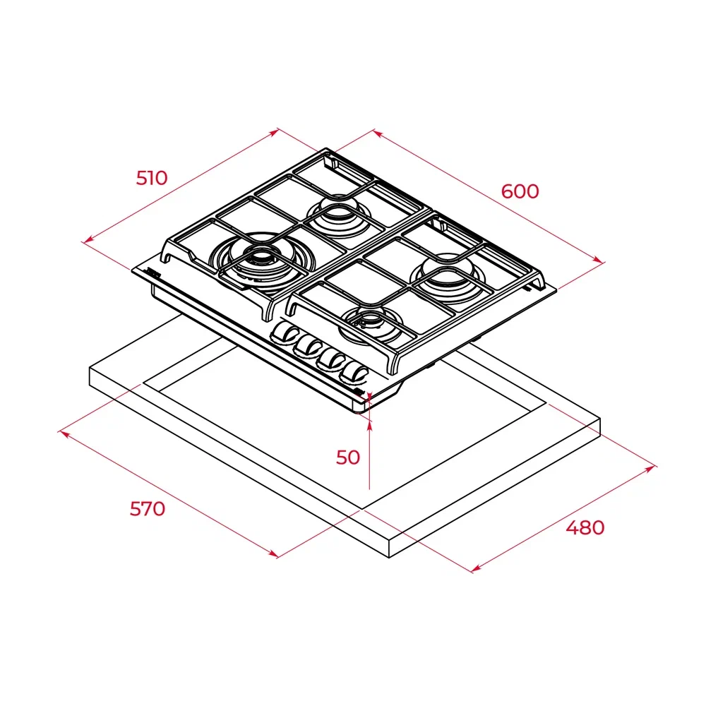 i Приборы могут имеют разное количество газовых, электрических и индукционных конфорок. Выбирайте оптимальный вариант для комфортной готовки.