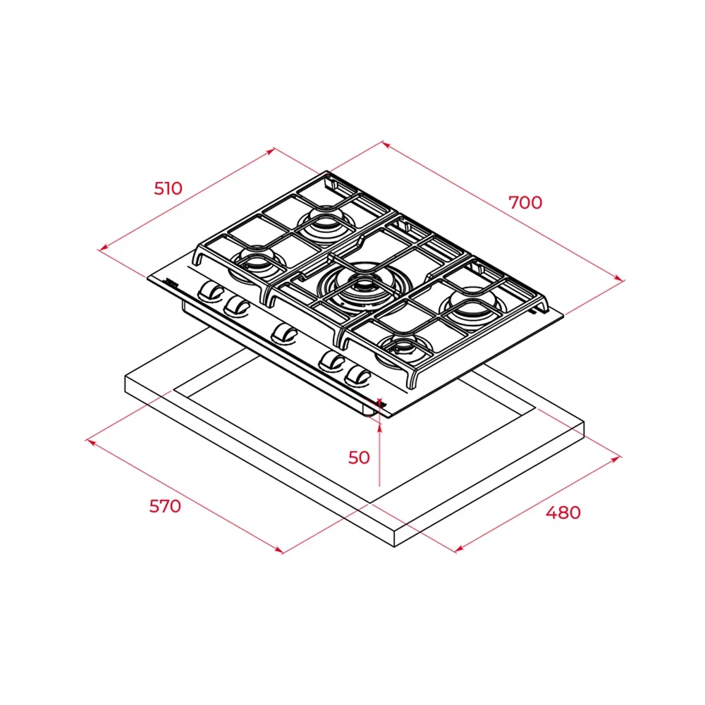 i Приборы могут имеют разное количество газовых, электрических и индукционных конфорок. Выбирайте оптимальный вариант для комфортной готовки.