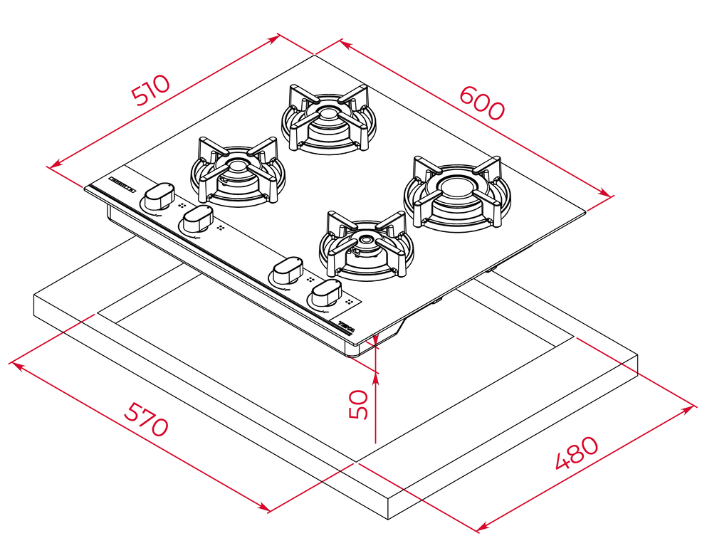 i Приборы могут имеют разное количество газовых, электрических и индукционных конфорок. Выбирайте оптимальный вариант для комфортной готовки.