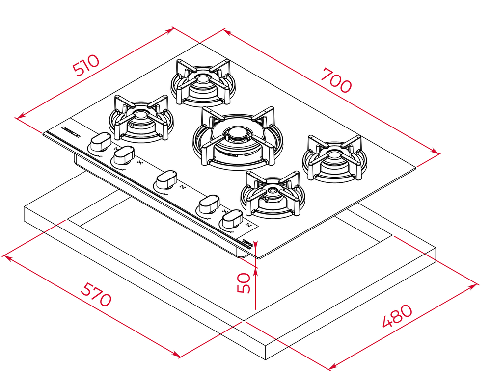 i Приборы могут имеют разное количество газовых, электрических и индукционных конфорок. Выбирайте оптимальный вариант для комфортной готовки.