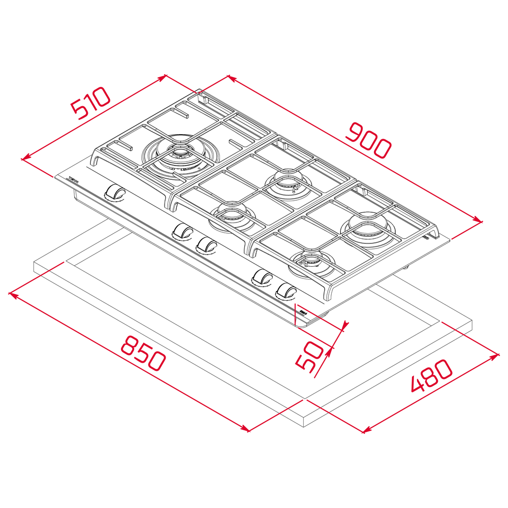 i Приборы могут имеют разное количество газовых, электрических и индукционных конфорок. Выбирайте оптимальный вариант для комфортной готовки.
