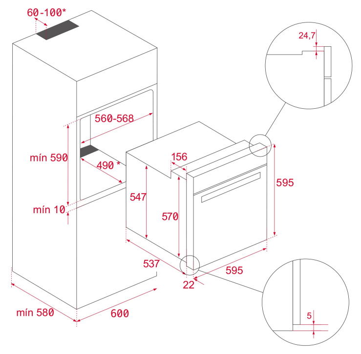 i Ширина корпуса электроприбора. Особенно важно точно знать точную допустимую ширину для встраиваемой техники.