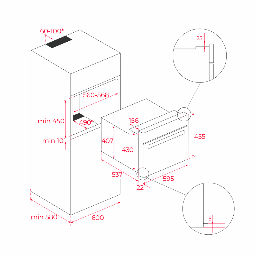 i Ширина корпуса электроприбора. Особенно важно точно знать точную допустимую ширину для встраиваемой техники.