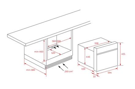 i Высота электроприбора. Подбирайте технику, учитывая стиль помещения, высоту кухонного гарнитура (до 2,5 м) и столешницы (ок. 90 см).