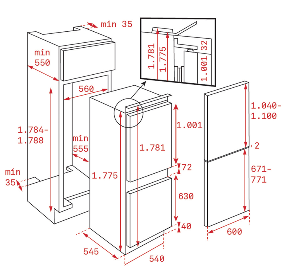 i Высота электроприбора. Подбирайте технику, учитывая стиль помещения, высоту кухонного гарнитура (до 2,5 м) и столешницы (ок. 90 см).