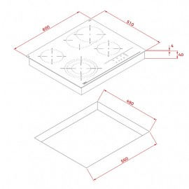 i Характер огранки фаски на внешней стороне варочной панели. Металлические рамки предотвращают забивание монтажных швов крошками и пылью.