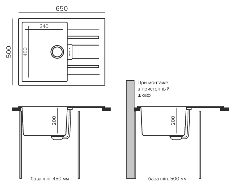 i Чтобы выполнить качественную установку, ширина кухонного шкафа должна соответствовать требованиям, заявленным производителем товара.