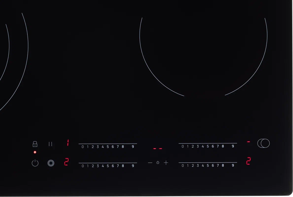 i Расположение панели управления варочной поверхностью относительно конфорок. Если панель расположена сбоку, она будет справа.