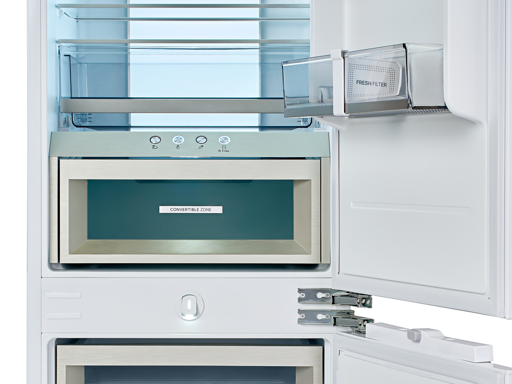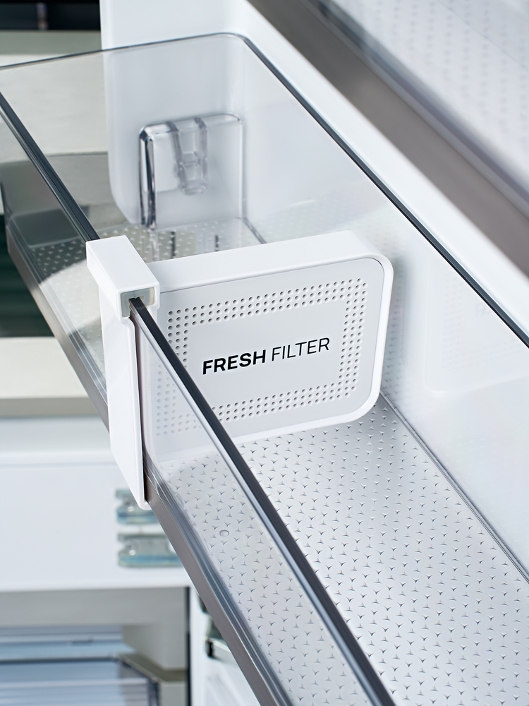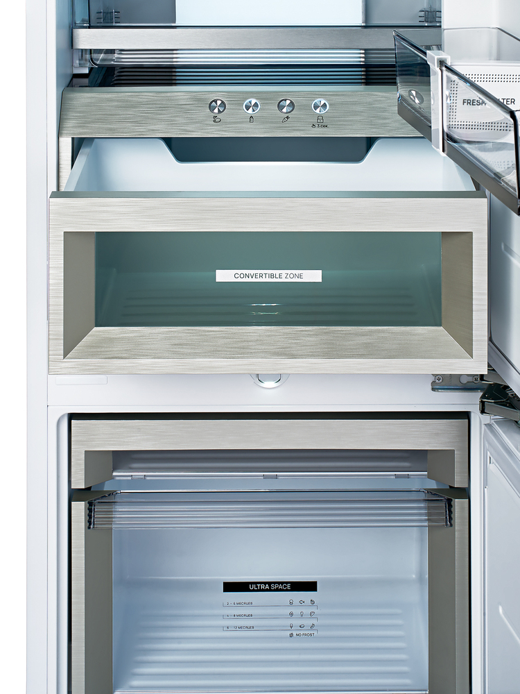 i В зоне свежести температура держится на уровне 0°С, так продукты дольше остаются свежими. Подходит для свежего мяса, рыбы, фруктов, овощей.