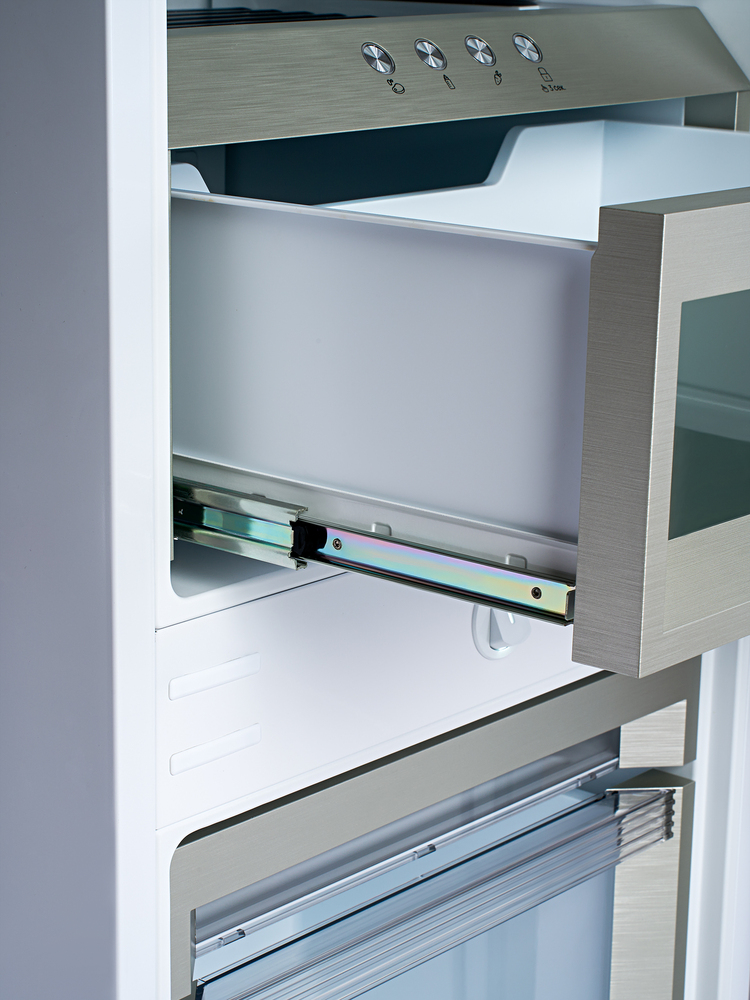i При жестком креплении фасад крепится непосредственно на дверцу. Door slider — это система двойных дверей с собственными петлями у каждой.