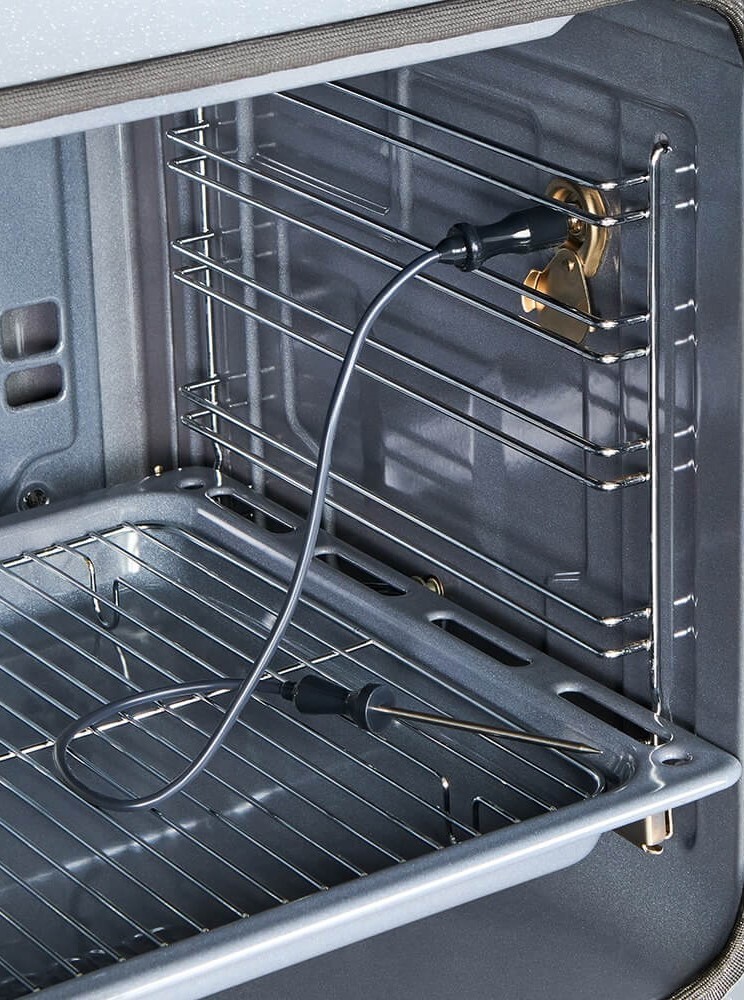 i Похожий на иглу датчик температуры. Позволяет контролировать температуру блюда, вовремя менять режим приготовления или отключать прибор.