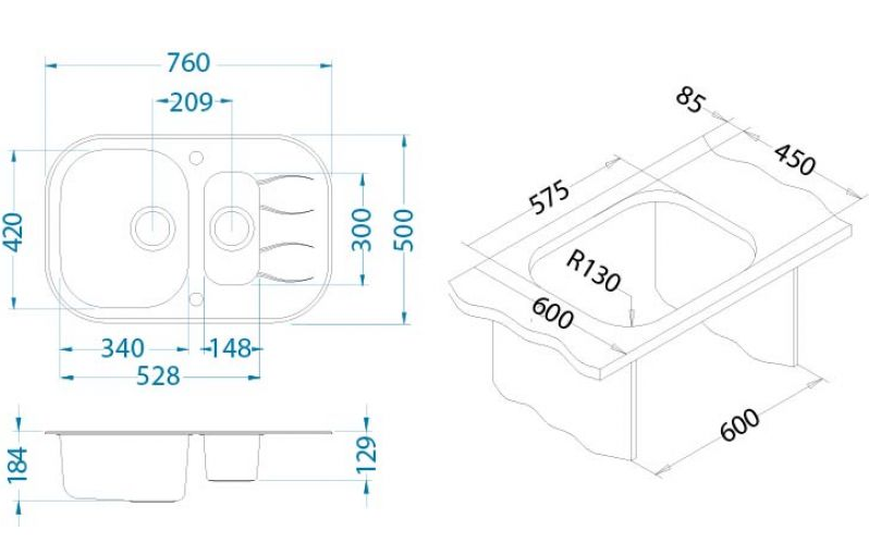 i Наличие и расположение крыла кухонной мойки — слева, справа или с обеих сторон. Крыло оборачиваемой мойки можно расположить с любой стороны.