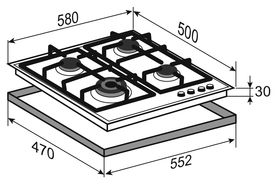 i Приборы могут имеют разное количество газовых, электрических и индукционных конфорок. Выбирайте оптимальный вариант для комфортной готовки.