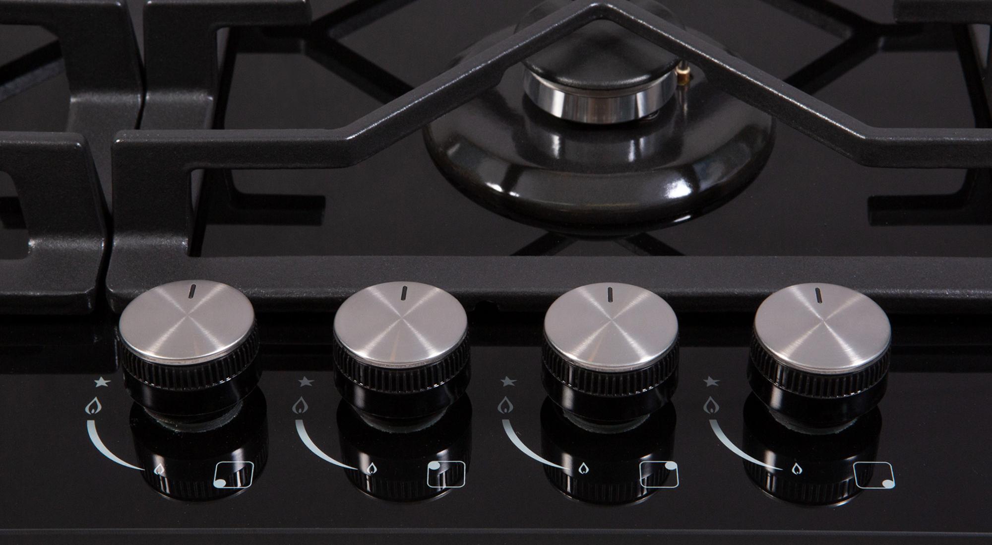 i Система безопасности в газовых плитах, варочных поверхностях и варочных центрах. Если пламя гаснет, подача газа прекращается автоматически.
