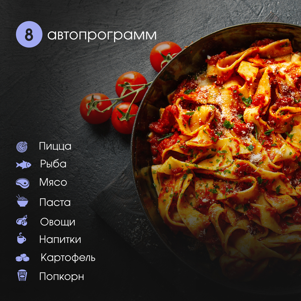 i Полезный объем внутренней камеры прибора. От объема камеры и мощности зависит размер блюда, которое можно подогреть или приготовить.