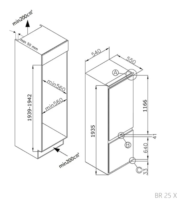 Zigmund & Shtain BR 25 X двухкамерный холодильник встраиваемый