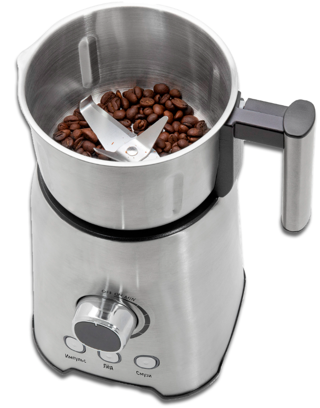 съемная чаша, ножи вынимаются для мойки; дополнительная стальная чаша измельчителя для кофе, орехов и прочих твердых продуктов; толкатель в комплекте |