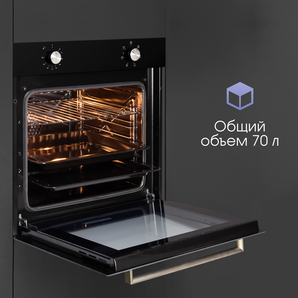 i Предполагает наличие встроенного вентилятора, который обеспечивает равномерное запекание благодаря непрерывной циркуляции горячего воздуха.