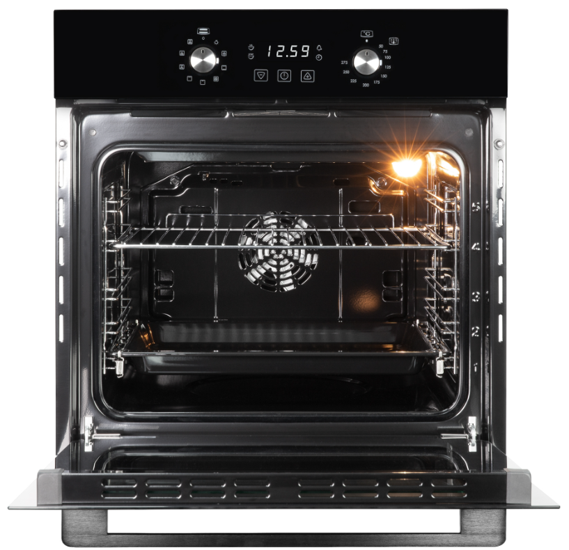 i Предполагает наличие встроенного вентилятора, который обеспечивает равномерное запекание благодаря непрерывной циркуляции горячего воздуха.