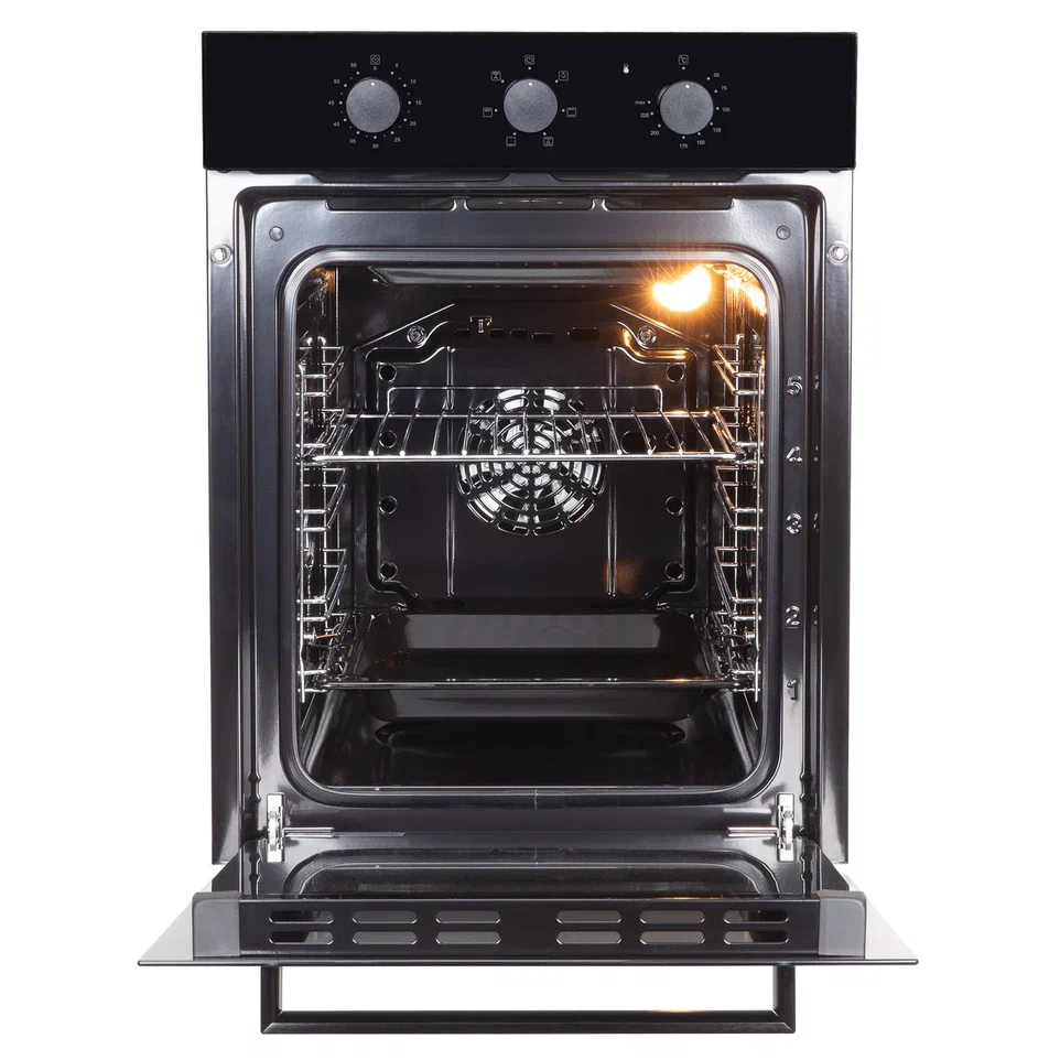 i У духового шкафа может быть газовый или электрический тип питания. Газовые духовки экономичнее, а электрические имеют больше режимов работы.
