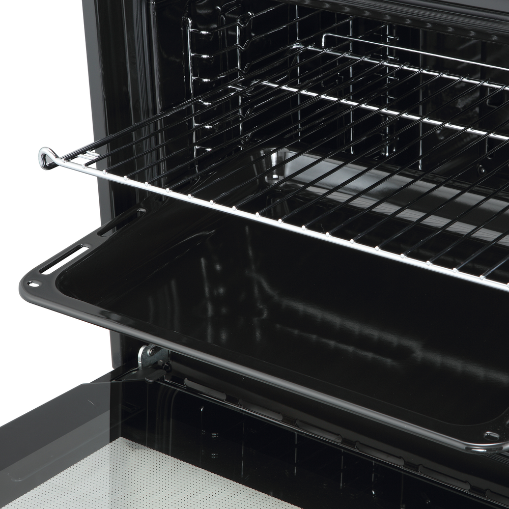 i Выдвижные металлические полозья, которые легко выезжают за пределы камеры духовки вместе с противнем, не давая ему упасть.
