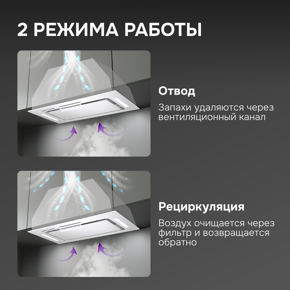 i В зависимости от расположения существует несколько типов установки кухонных вытяжек: встраиваемые, стандартные, пристенные, островные и др.