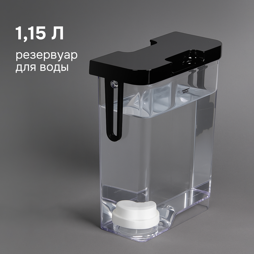 i Устройство для перемалывания кофе уже встроено в прибор. Достаточно засыпать зерна в емкость и наслаждаться свежемолотым кофе.