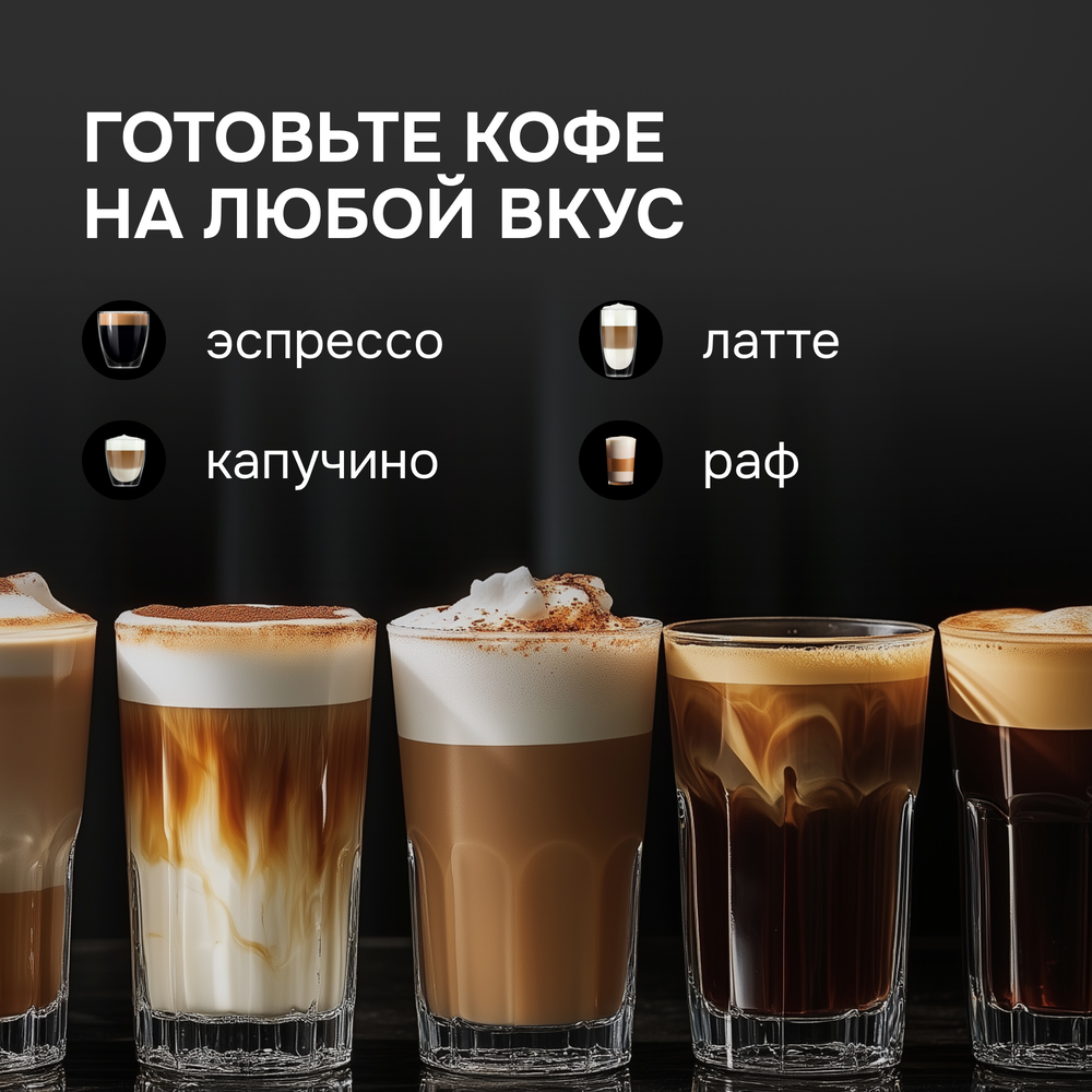 i Если у кофемашины есть встроенная кофемолка, она сможет готовить кофе из зерен. Для остальных моделей подойдет молотый кофе или капсулы.