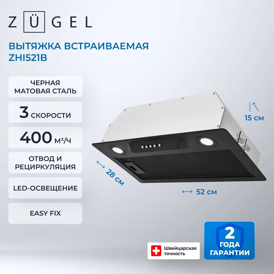 ZUGEL ZHI521B встраиваемая вытяжка для шкафа