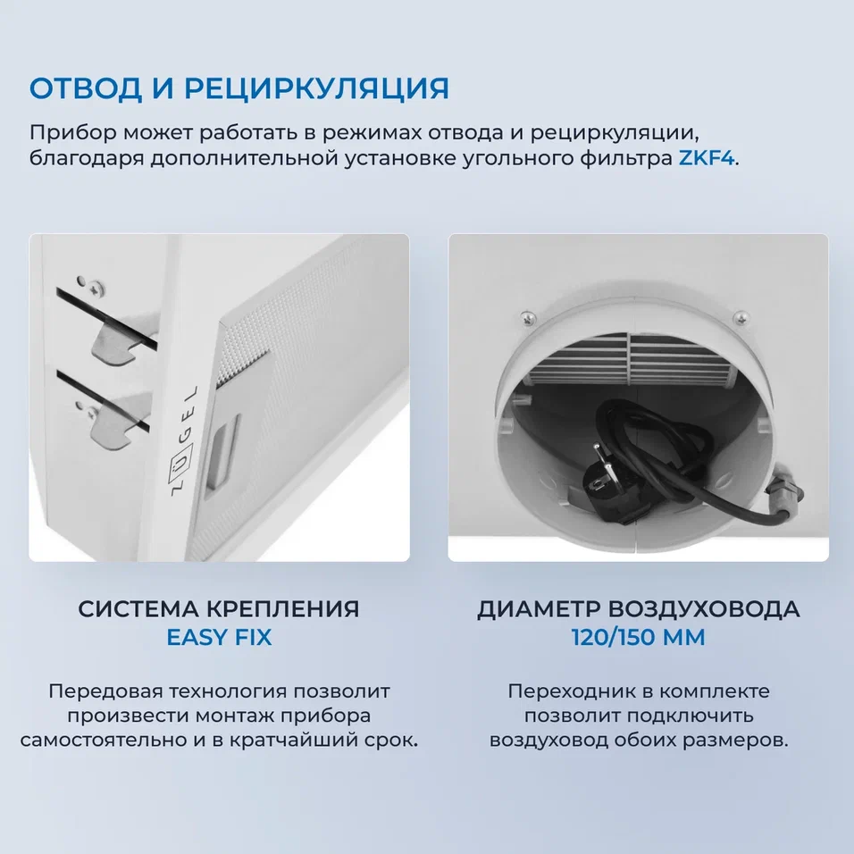ZUGEL ZHI522W встраиваемая вытяжка для шкафа